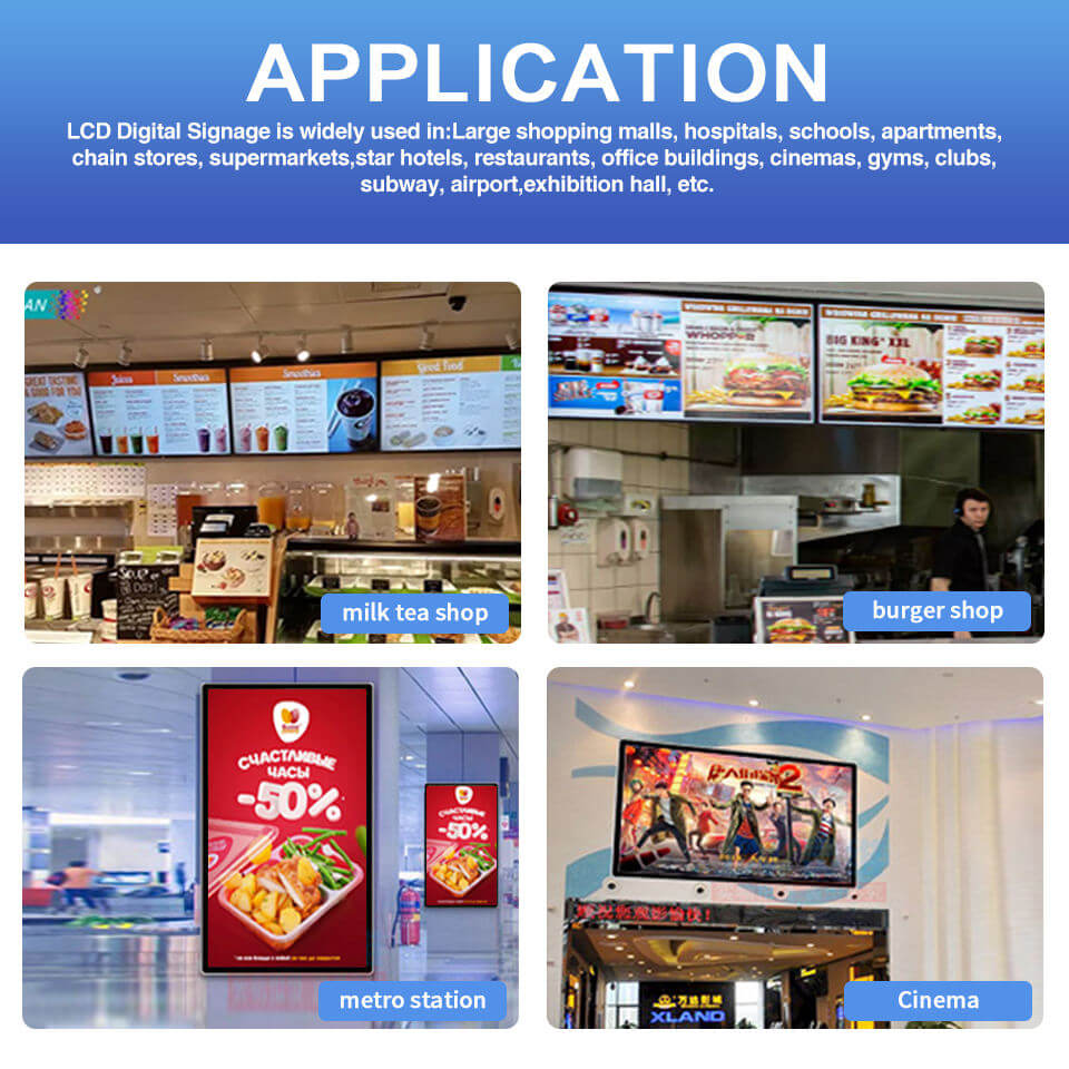 Indoor 65 inches 4K UHD Wall Mounted Horizontal Digital Signage for Restaurants, Shopping Mall, Airport. Find the perfect commercial signage display for your business!
