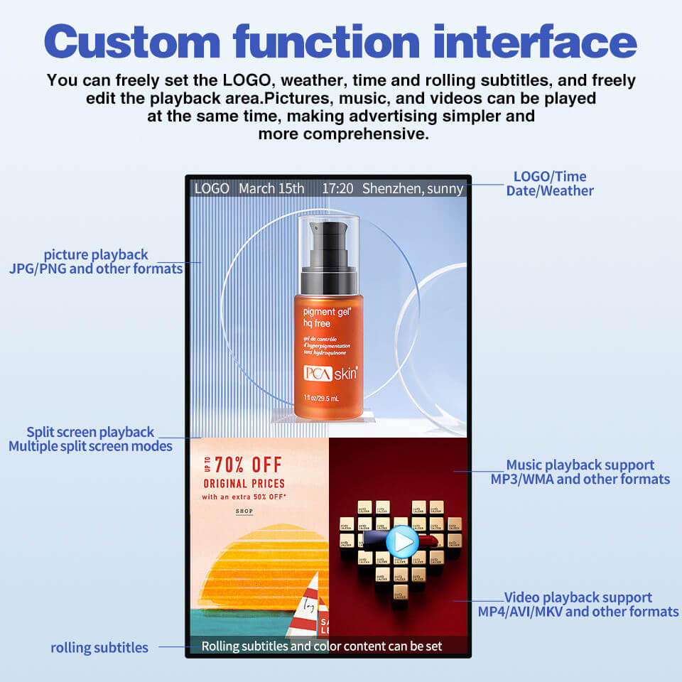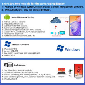 FUNLCD provides customization options for some of its products. This allows customers to tailor the specifications and features of their devices to better suit their specific needs and preferences. For example, with digital signage displays, users may be able to choose the screen size, operating system, processor, amount of RAM, storage capacity, and other components. However, the extent of customization may vary depending on the product and the region.