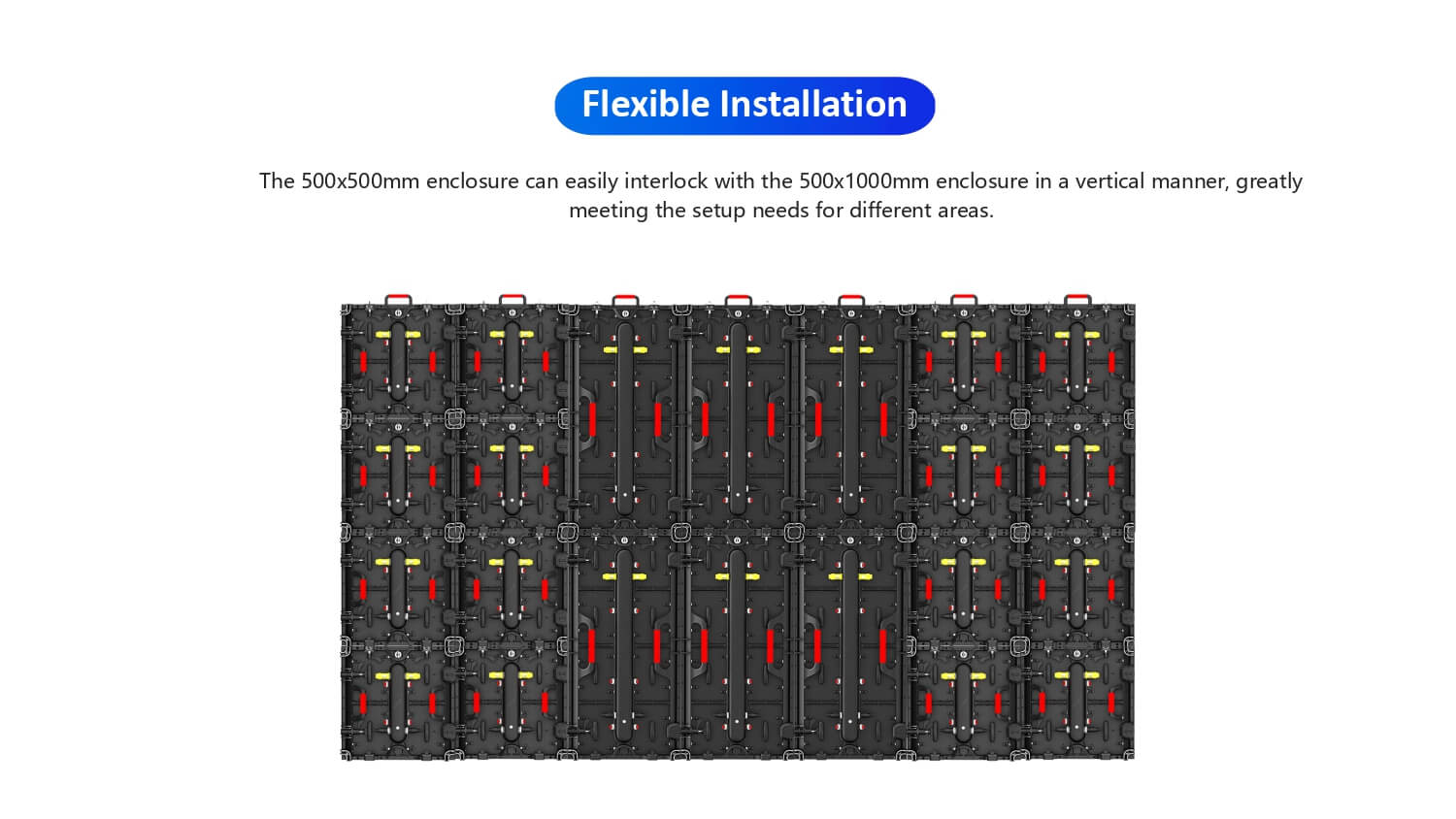Outdoor Rental LED display panels are thin and lightweight for faster and easier installation. There are no gaps between each LED display panel, making it ideal for corporate meetings, outdoor celebrations, weddings and other events.