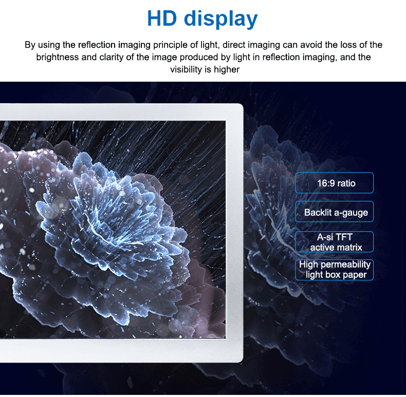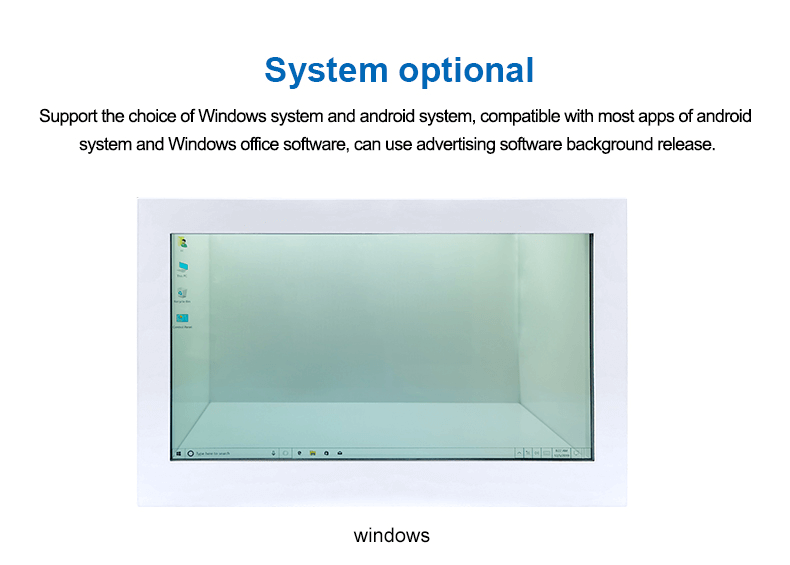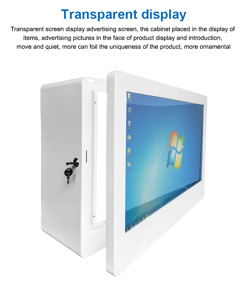 - Customers’ brand experience and shopping feeling. Transparent panel adopts wide-viewing angle technology, which can realize up, down, left, right and right full viewing angle.