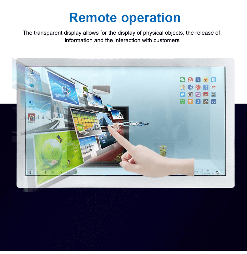 - Transparent screen with high light transmittance allows you to see the program being played through the screen. Combined with the dynamic advertising information of the colorful products is combined with the static objects such as terminal products and display cabinets, which enhances the customers’ brand experience and shopping fun.