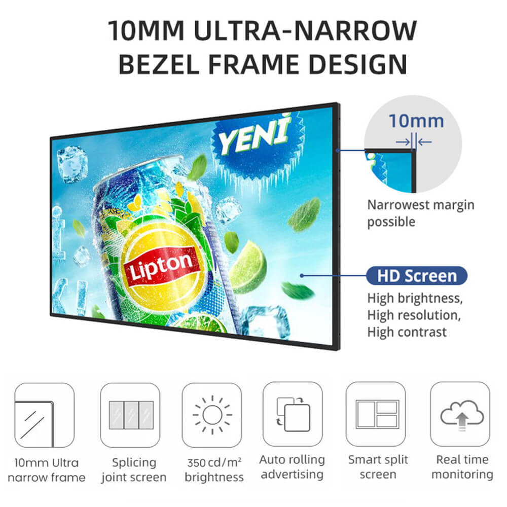 43 Inch 4K UHD 500nits Wall Mounted Digital Signage Display Slim Fit Frameless Commercial Display LCD Monitor Advertising Screen 4-64GB Android 11.0 with HDMI Input