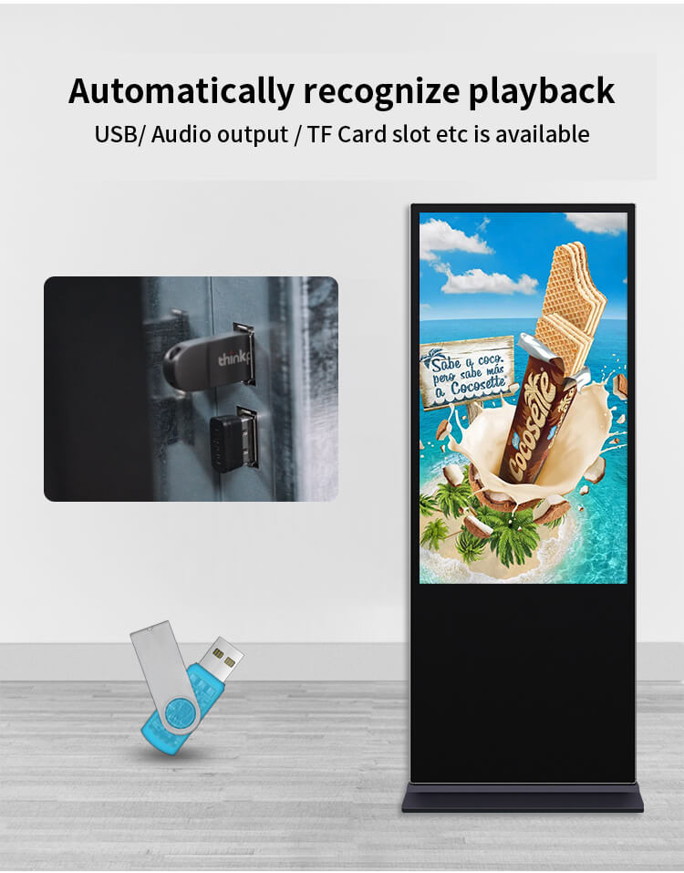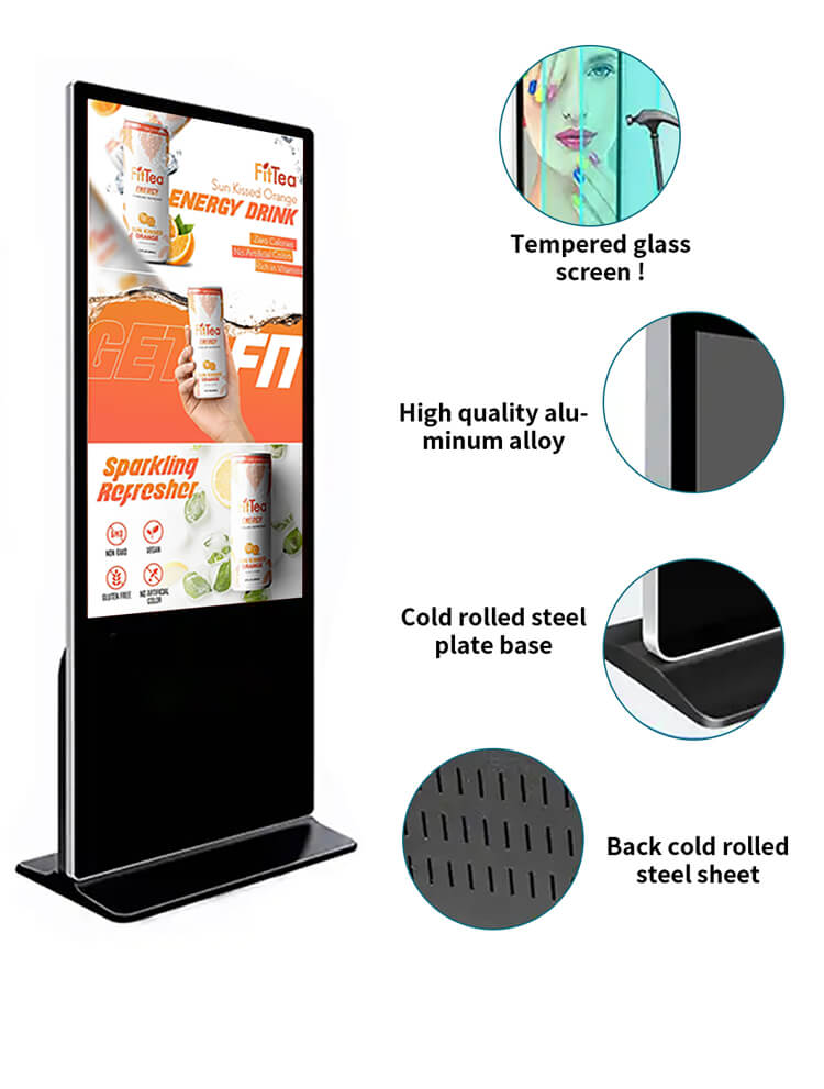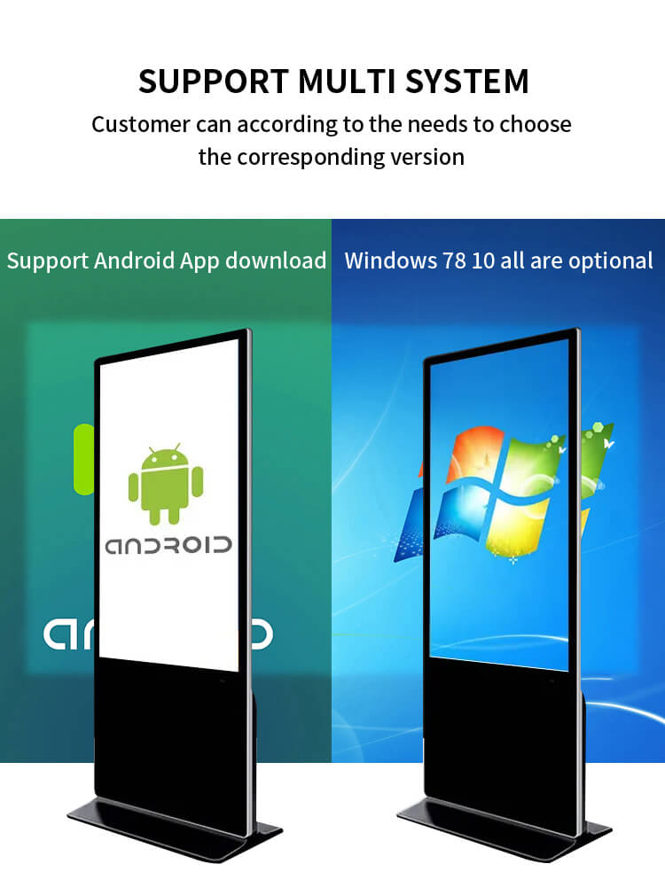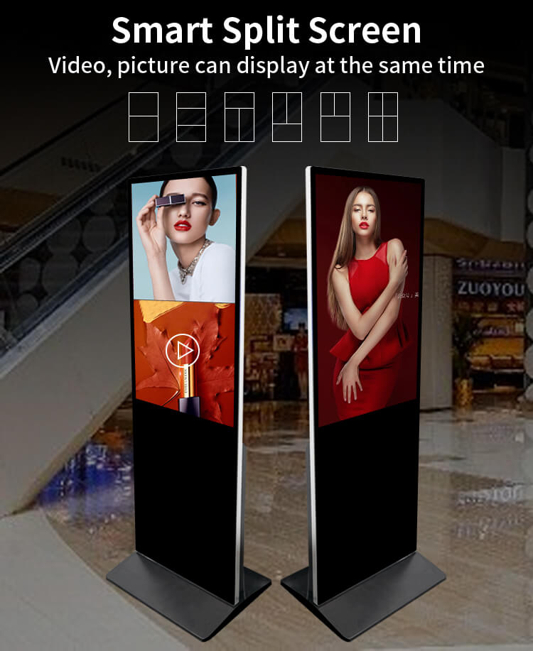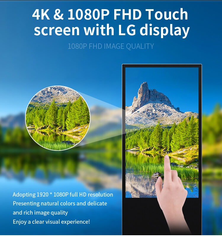 The FUNLCD 65-inch Interactive Floor-standing Digital Signage LCD Advertising Display is an innovative interactive kiosk designed to attract and capture the attention of any user. Equipped with multi-touch technology, the touch display responds intuitively to all new digital signage applications and all solutions developed to enhance information management.
