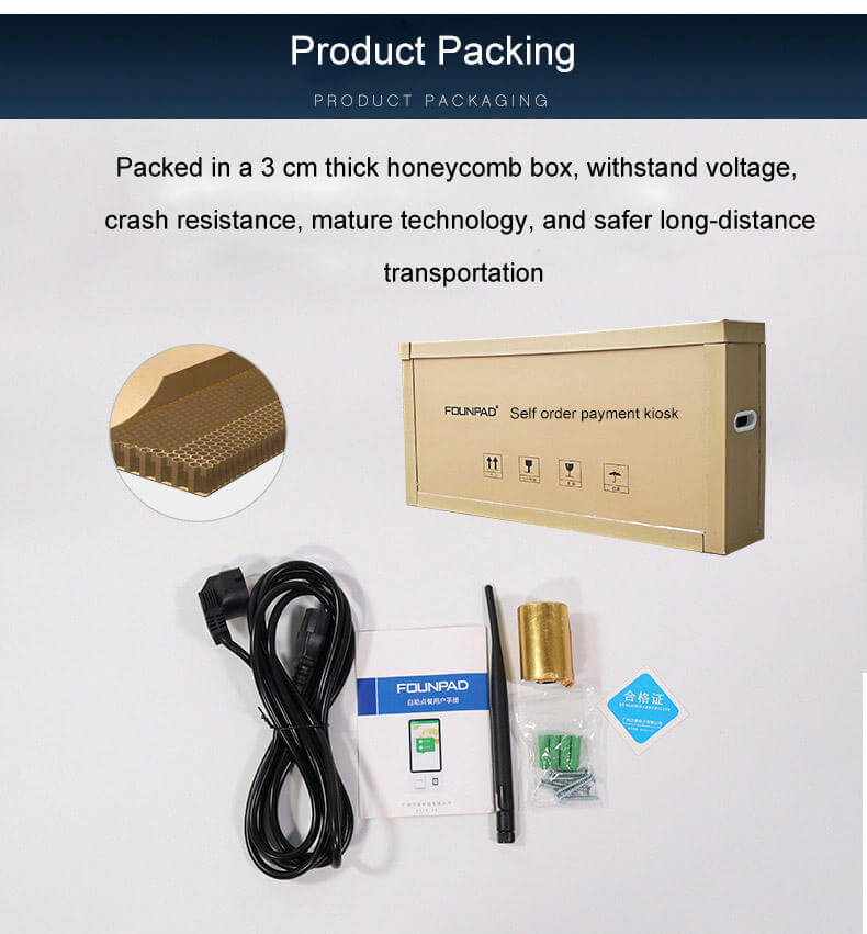 Fittings(optional): Thermal printer,scanner,pos machine,RFID card reader,camera