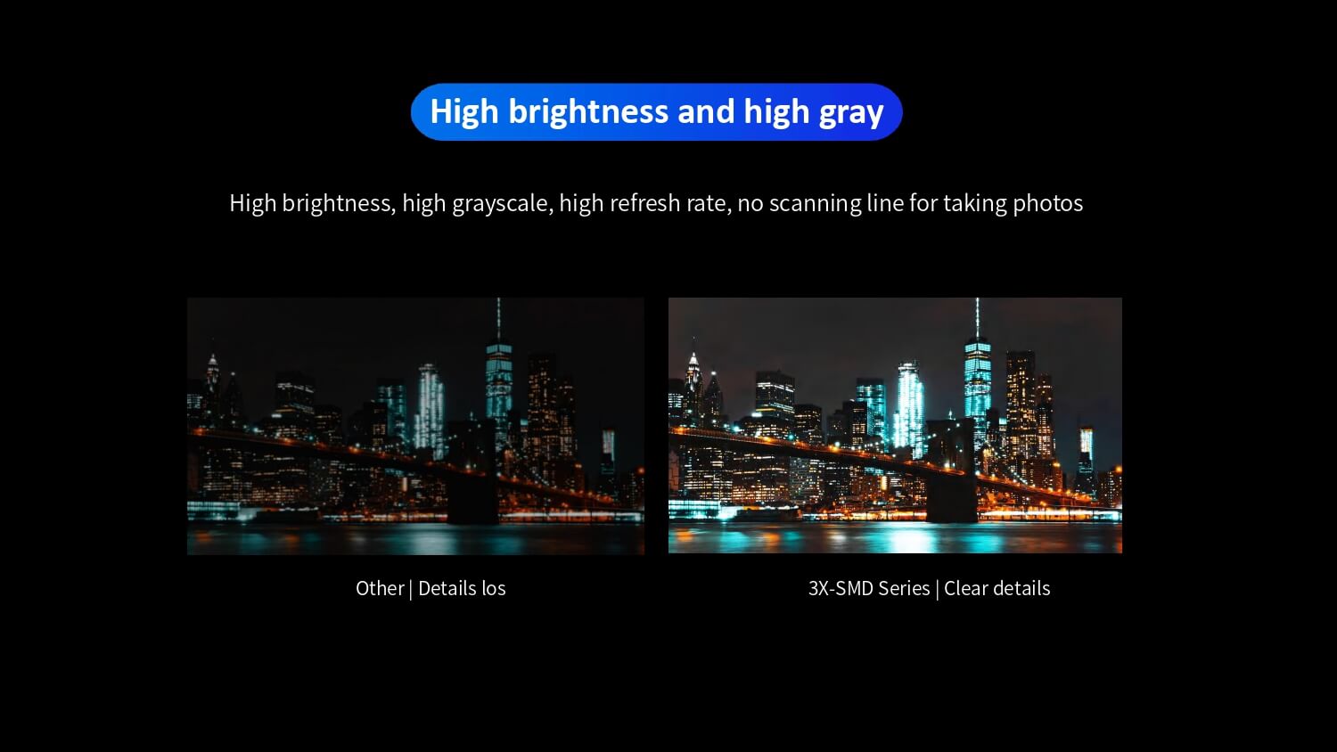 Indoor small pixel pitch LED display X3-SMD is ideal for indoor applications as they greatly improve image quality and shorten the required viewing distance. Our Small Pixel Pitch Indoor LED Display is an ultra-thin, full-color LED display that is perfect for retail, staging, offices and many more indoor applications. Quality guaranteed.